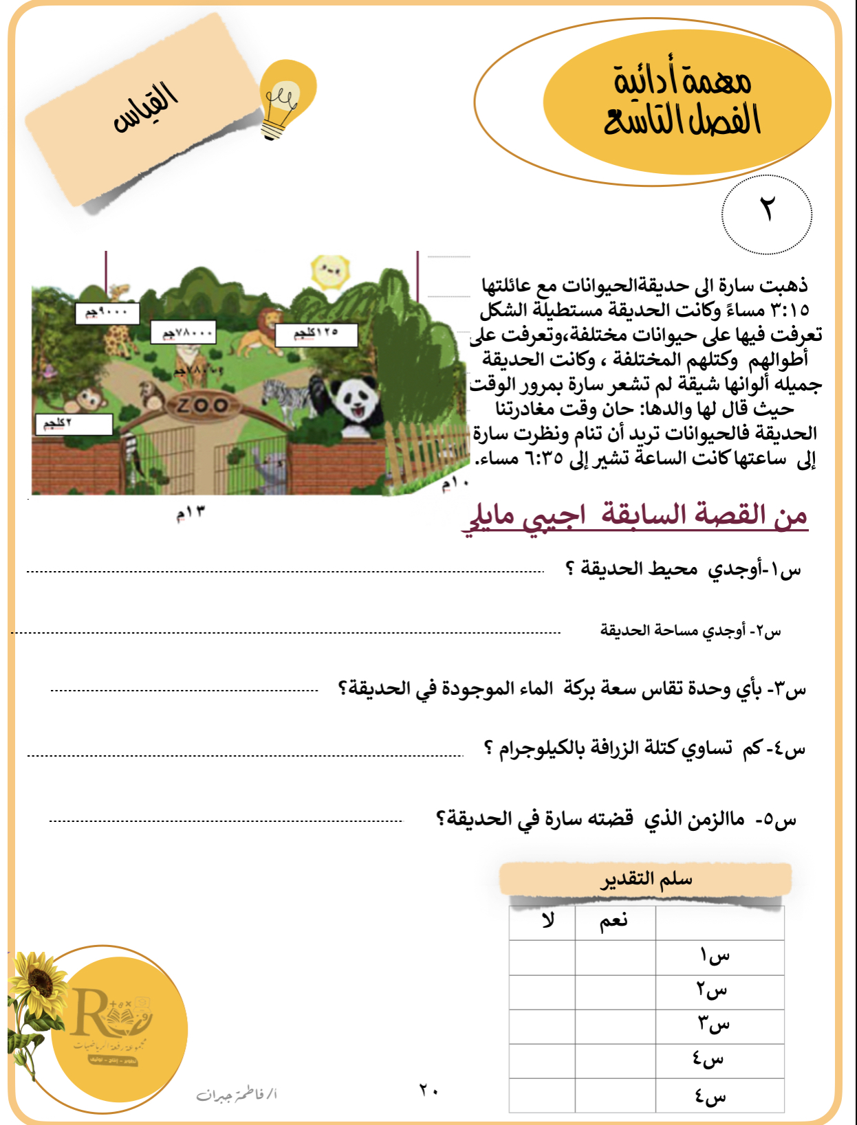 ورقة عمل (تقدير الحجم وقياسه