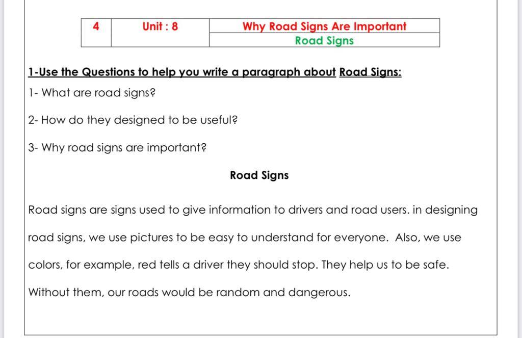 ورقه عمل للوحده الثامنه docx -Revision U.8 Drive slowly - Answer