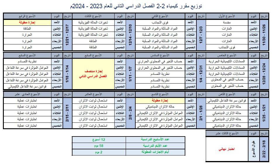 توزيع مقرر 2-2 عام 1445