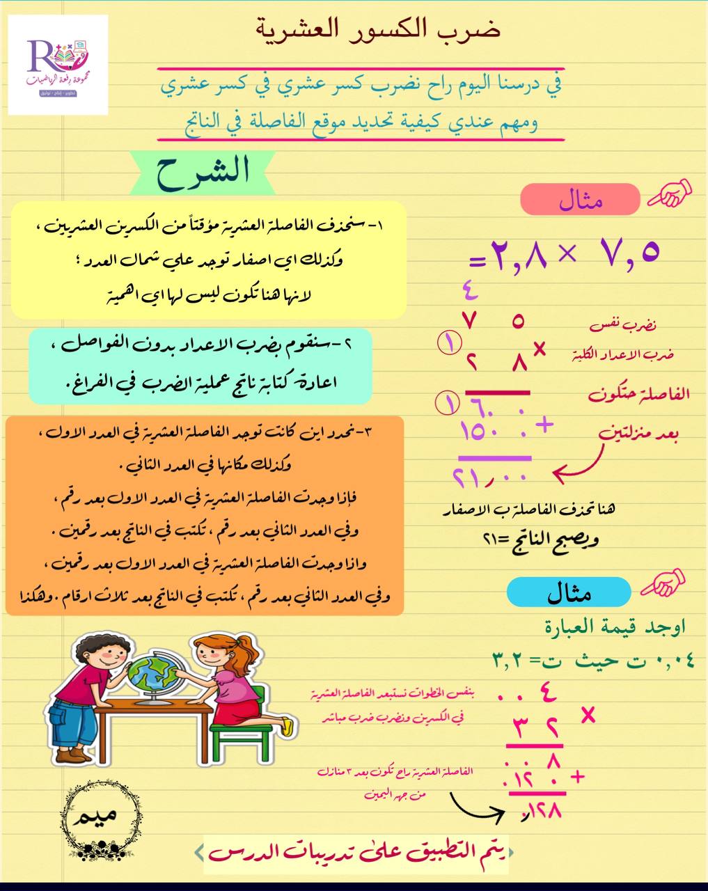 ملخص درس ضرب الكسور العشرية أ\م مريم الغامدي