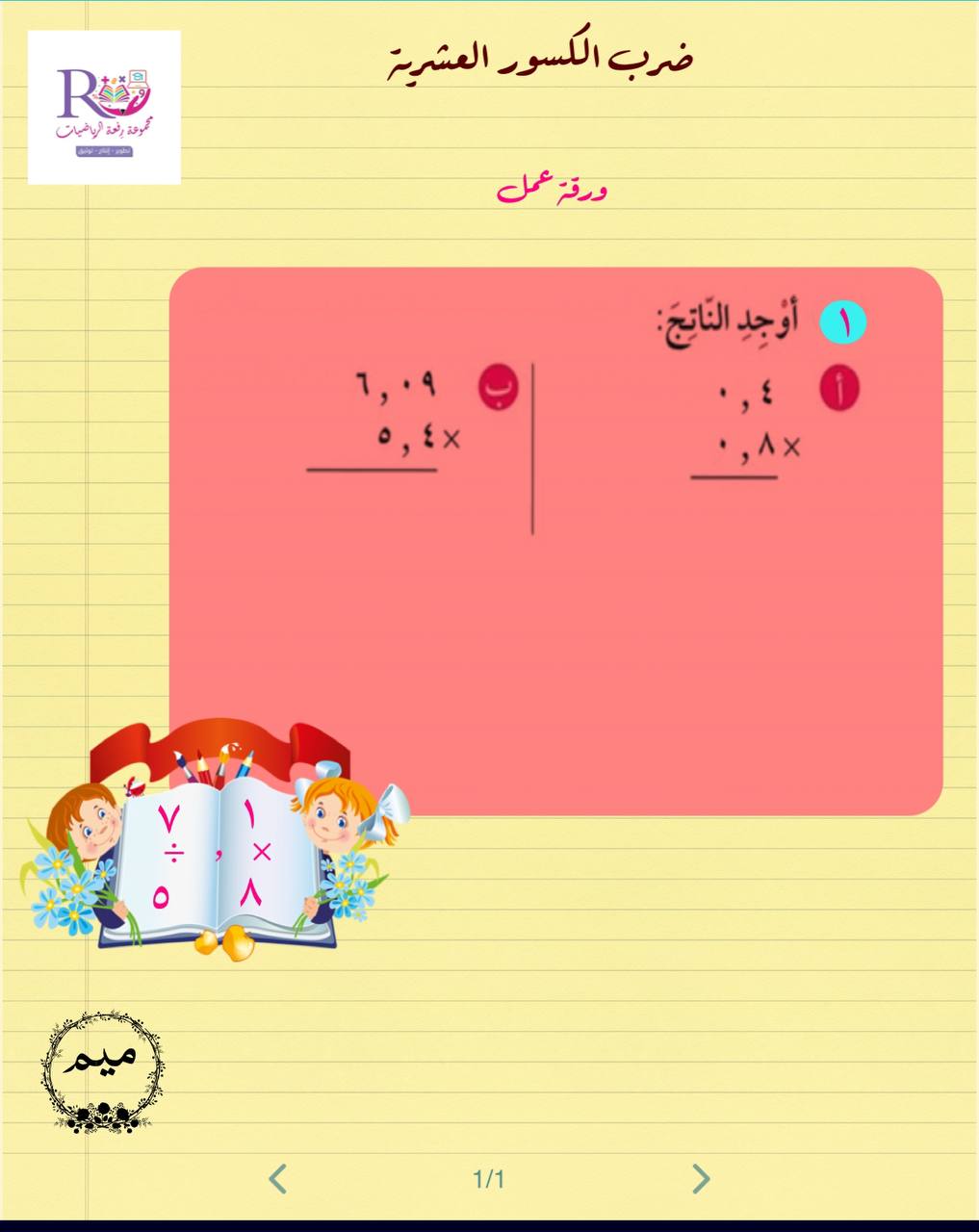 ورقة عمل لدرس ضرب الكسور العشرية أ\م مريم الغامدي
