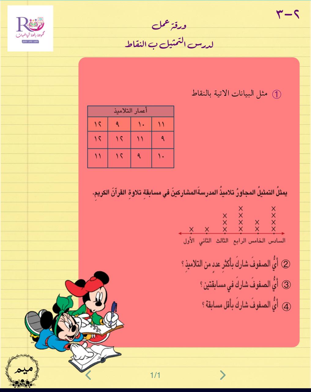 ورقة عمل لدرس التمثيل بالنقاط أ/ مريم الغامدي