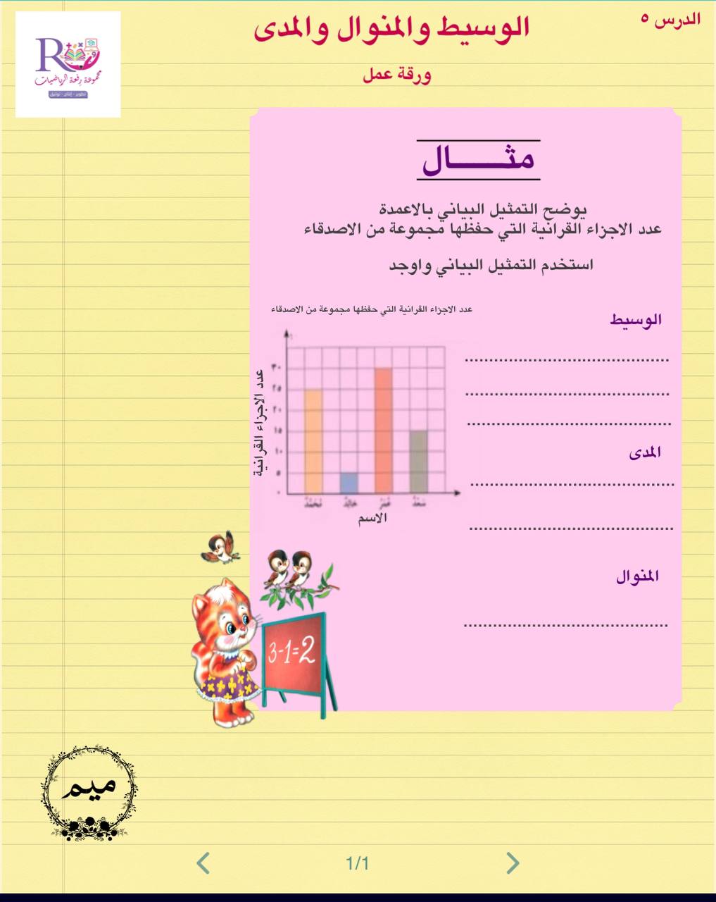 ورقه عمل درس الوسيط والمنوال والمدى أ/ مريم الغامدي