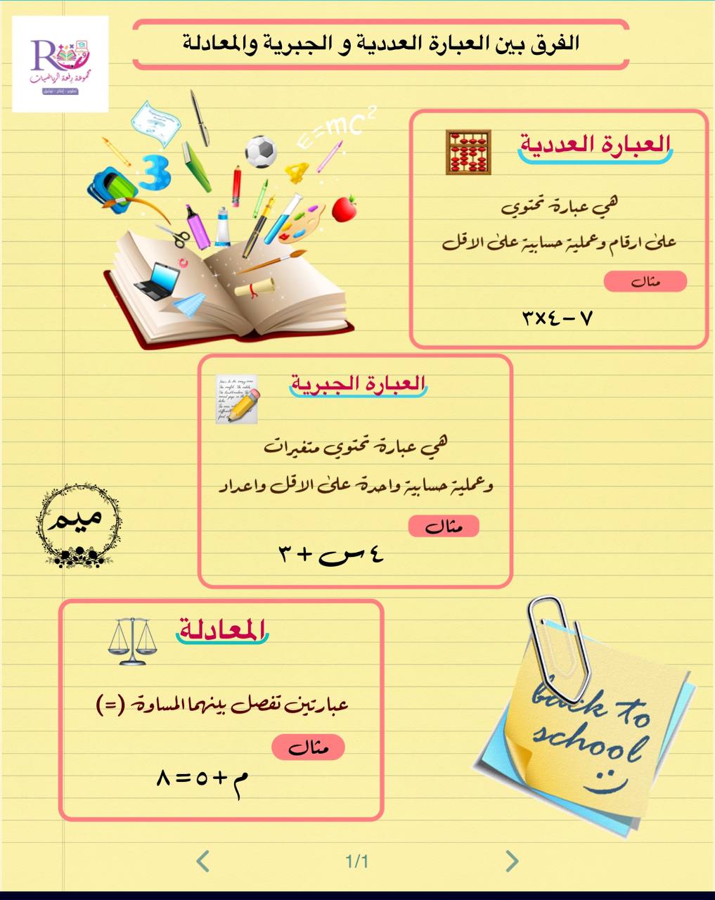 العبارة العددية و الجبرية والمعادلة أ/ مريم الغامدي