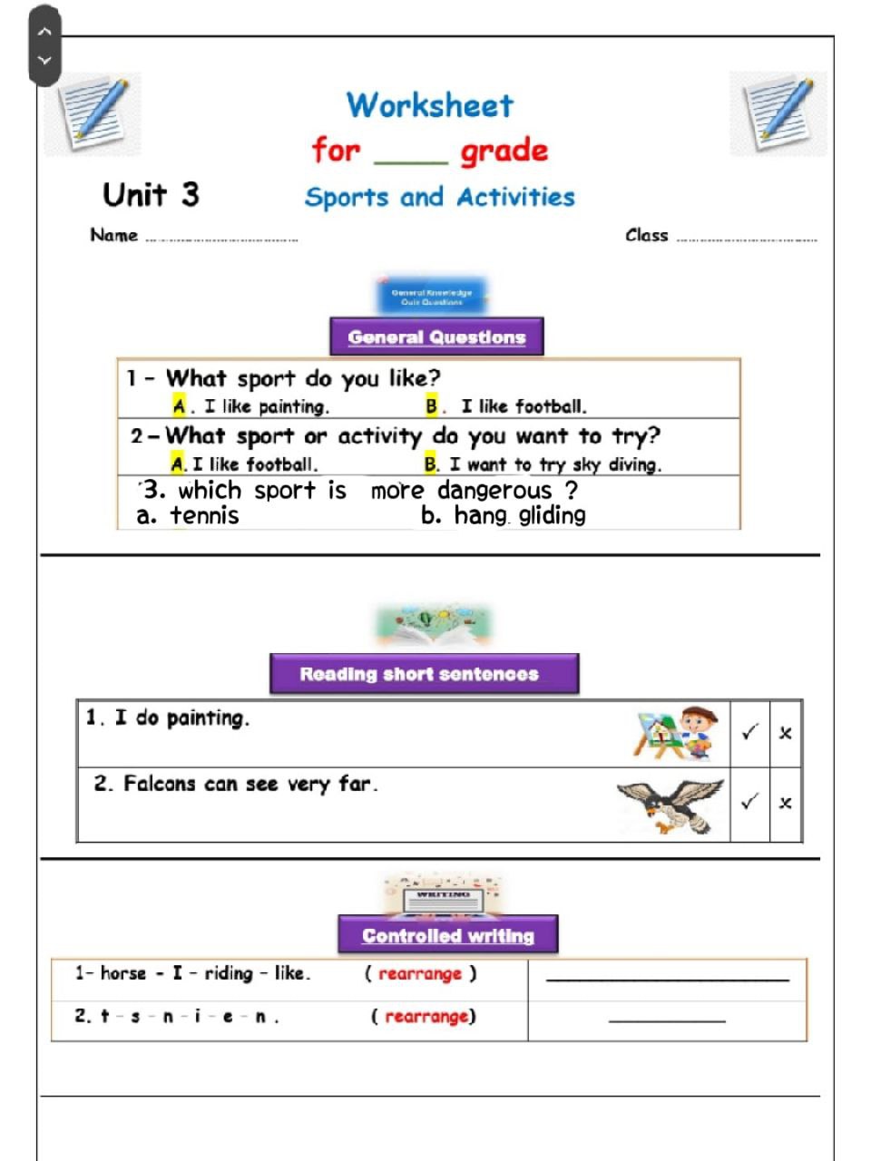 ورقه عمل للوحده الثالثه we can 3(U 3 jpg