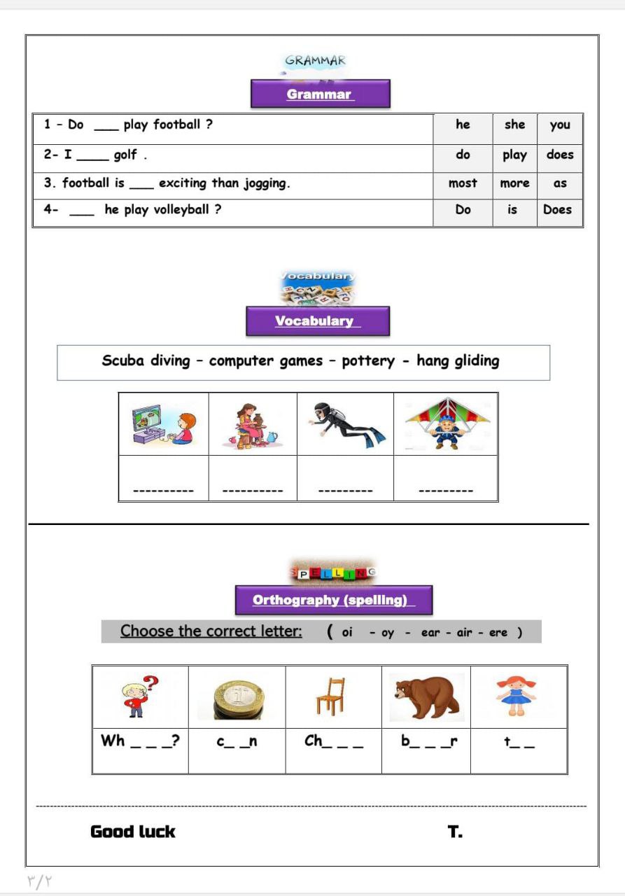 تدريبات علي الوحده الثالثه 2 T - F exercises pdf
