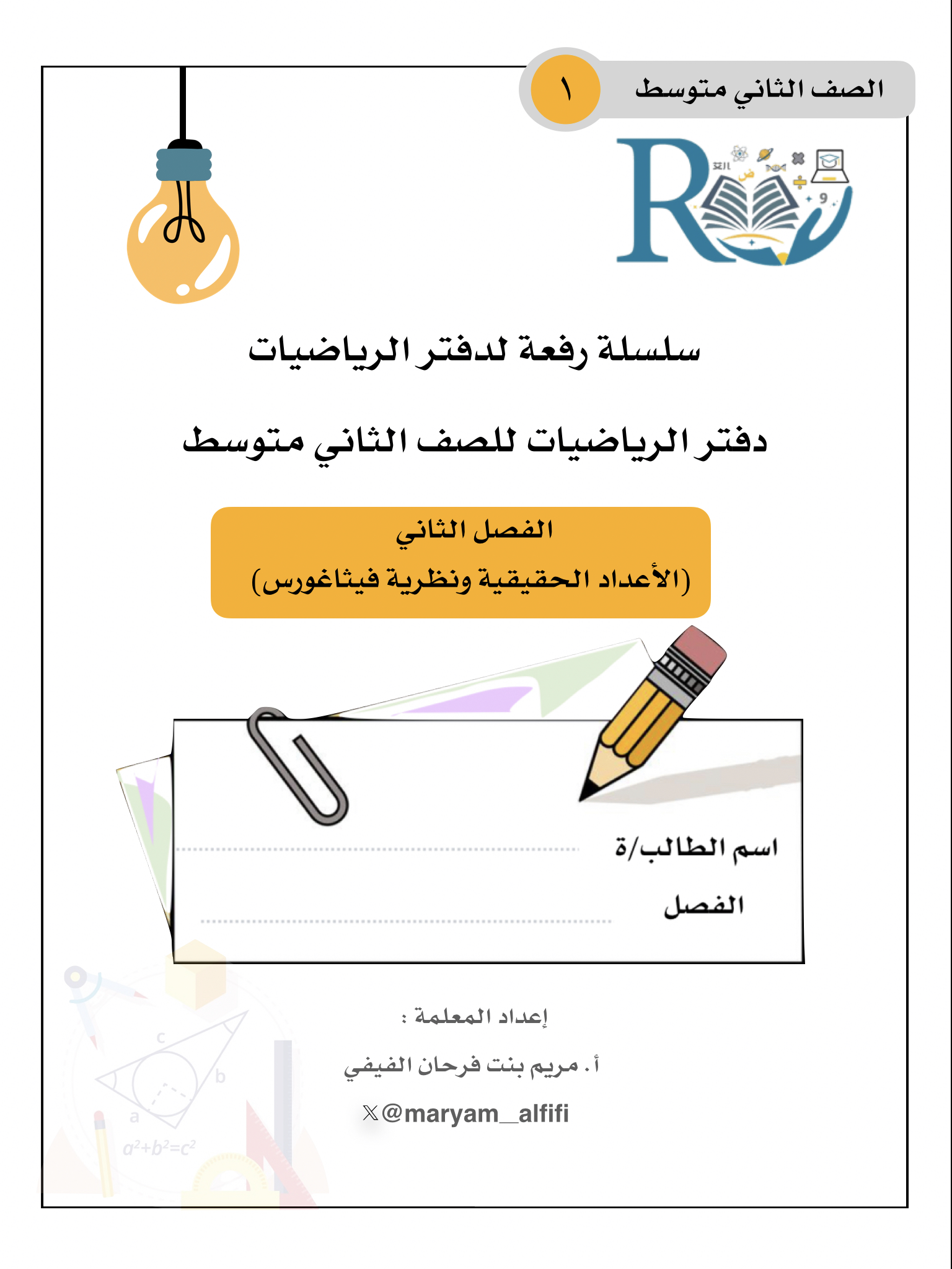 دفتر الرياضيات الفصل الثاني ( الأعداد الحقيقية ونظرية فيثاغورس)