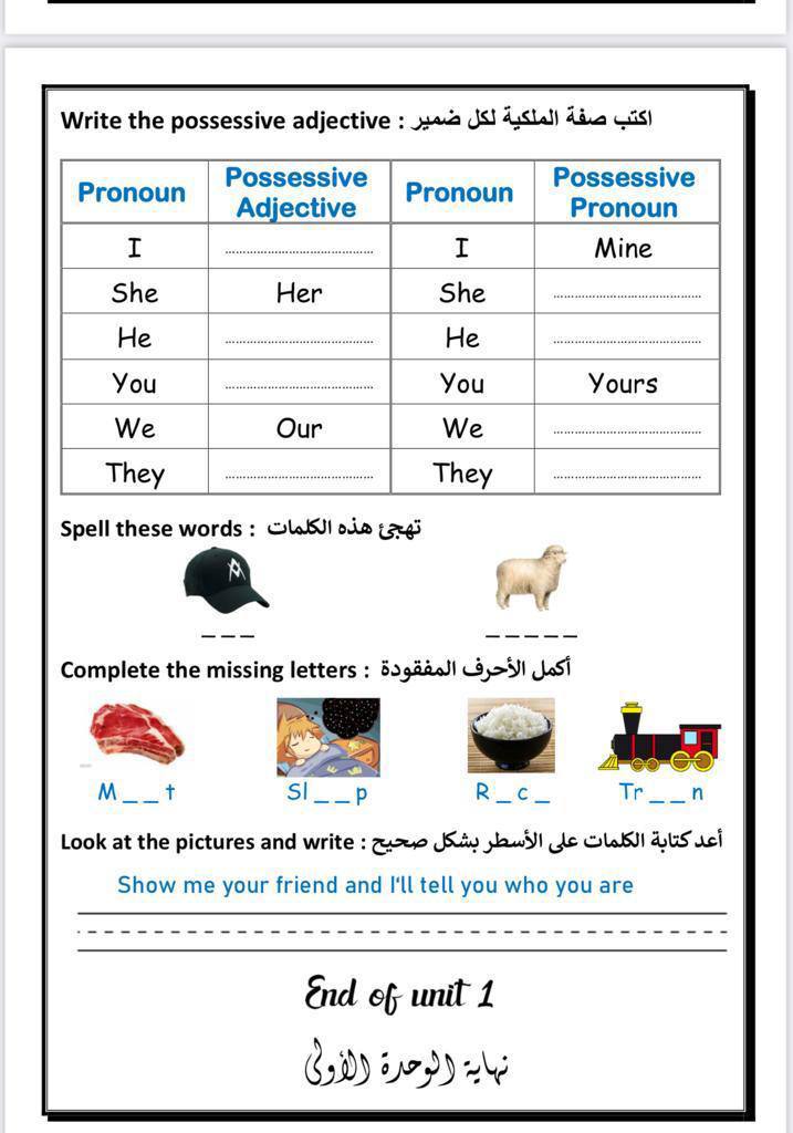 ورقه عمل للوحده الاولي (We Can3 Unit 1 WORKSHEETS)pdf
