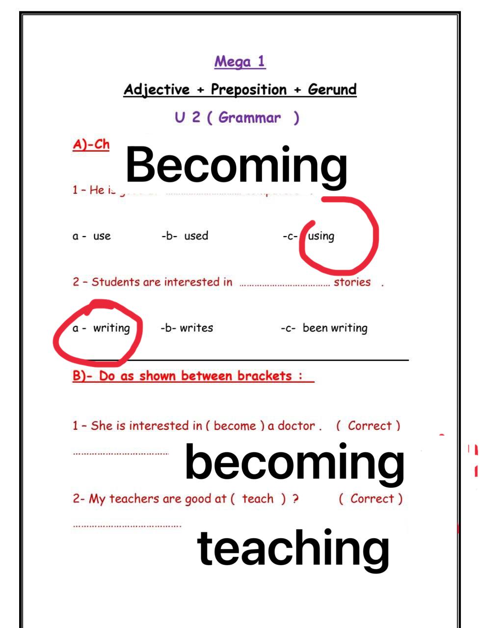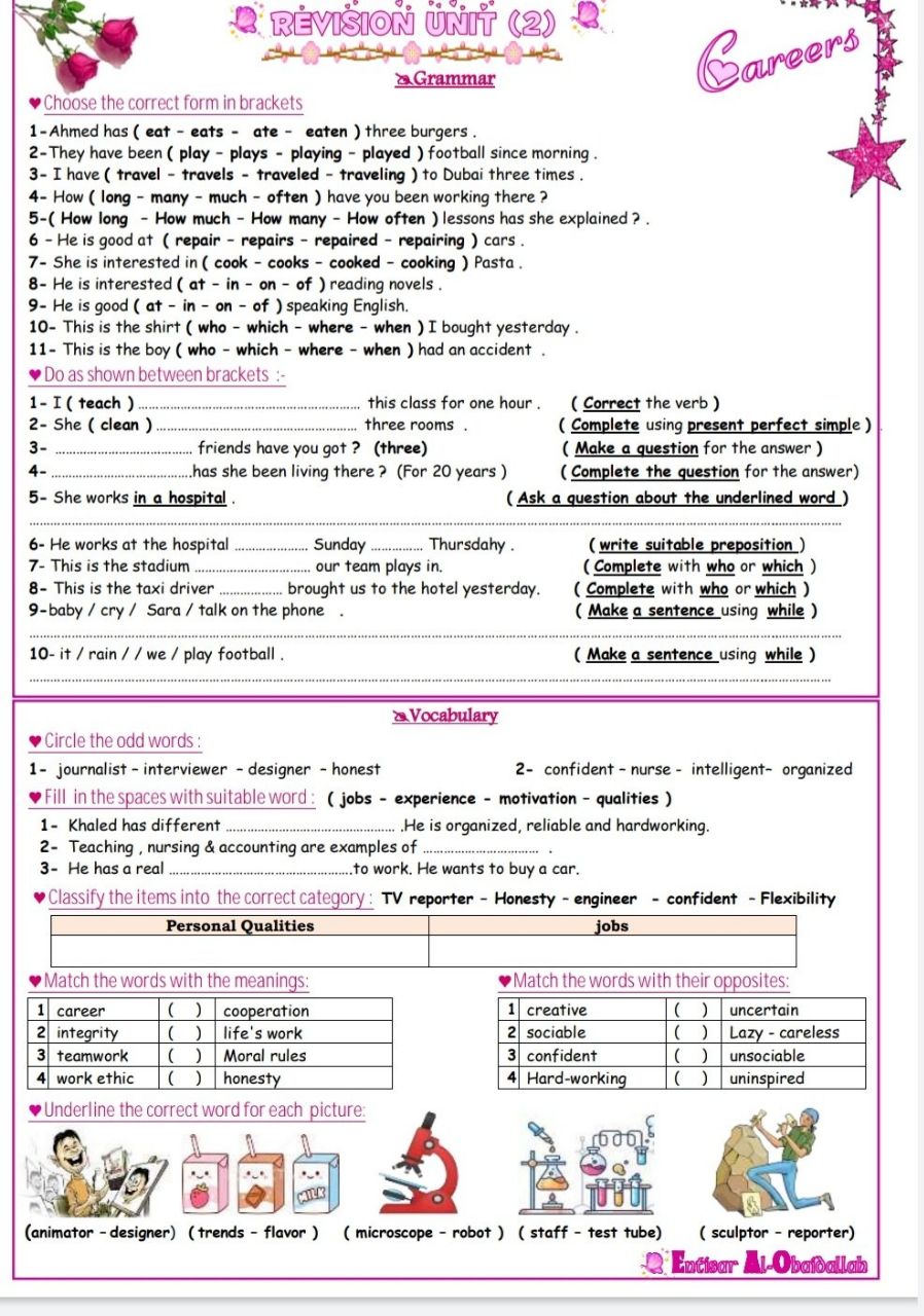 ورقه عمل علي الوحده الثانية ميجا جول1 ( grammar )