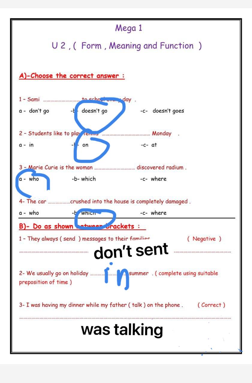 ورقه عمل علي الوحده الثانية ميجا جول1 ( form meaning and function )