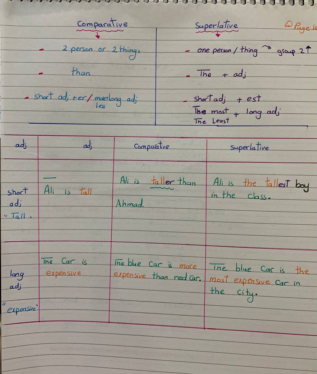 شرح قواعد الوحدة الأولى MG3 (comparative -superlative) أ/اسماء