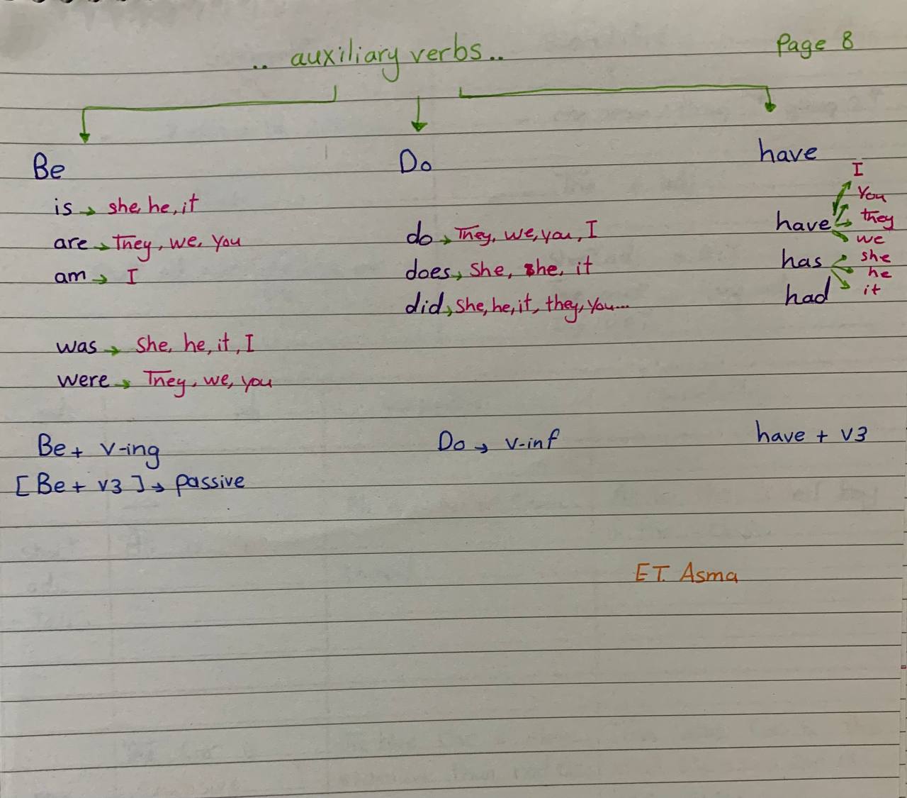 شرح قواعد الوحدة الأولى MG3 (auxiliary verbs) أ/اسماء