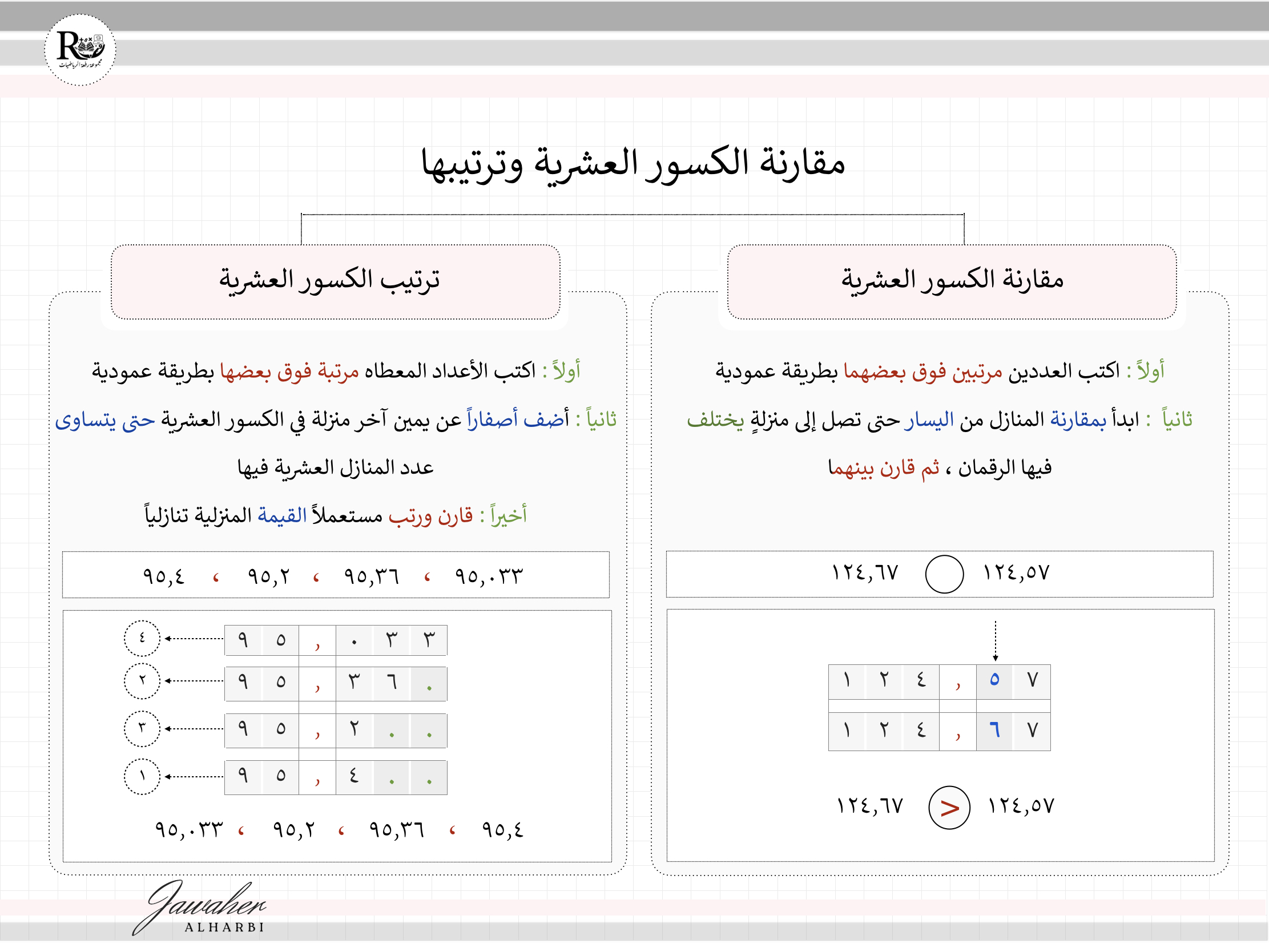 *خطوات مقارنة الكسور العشرية وترتيبها