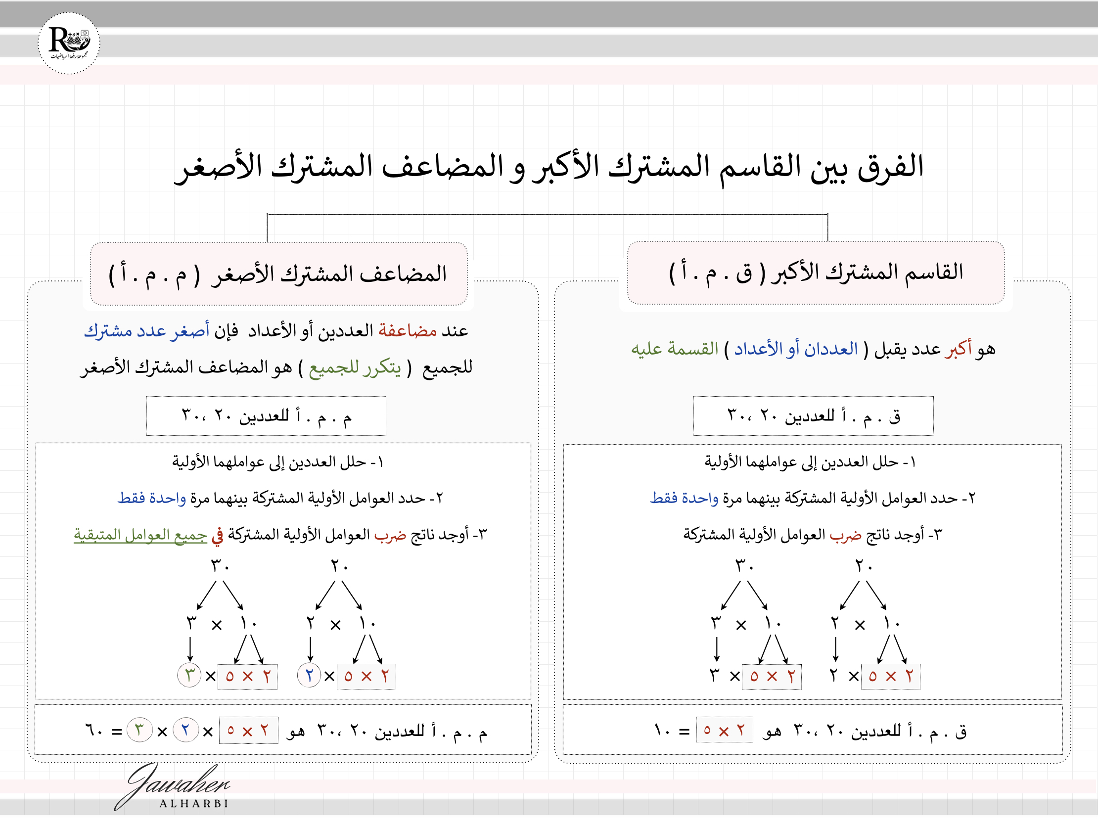 *خارطة مفاهيم الفرق بين القاسم المشترك الاكبر والمضاعف المشترك الأصغر