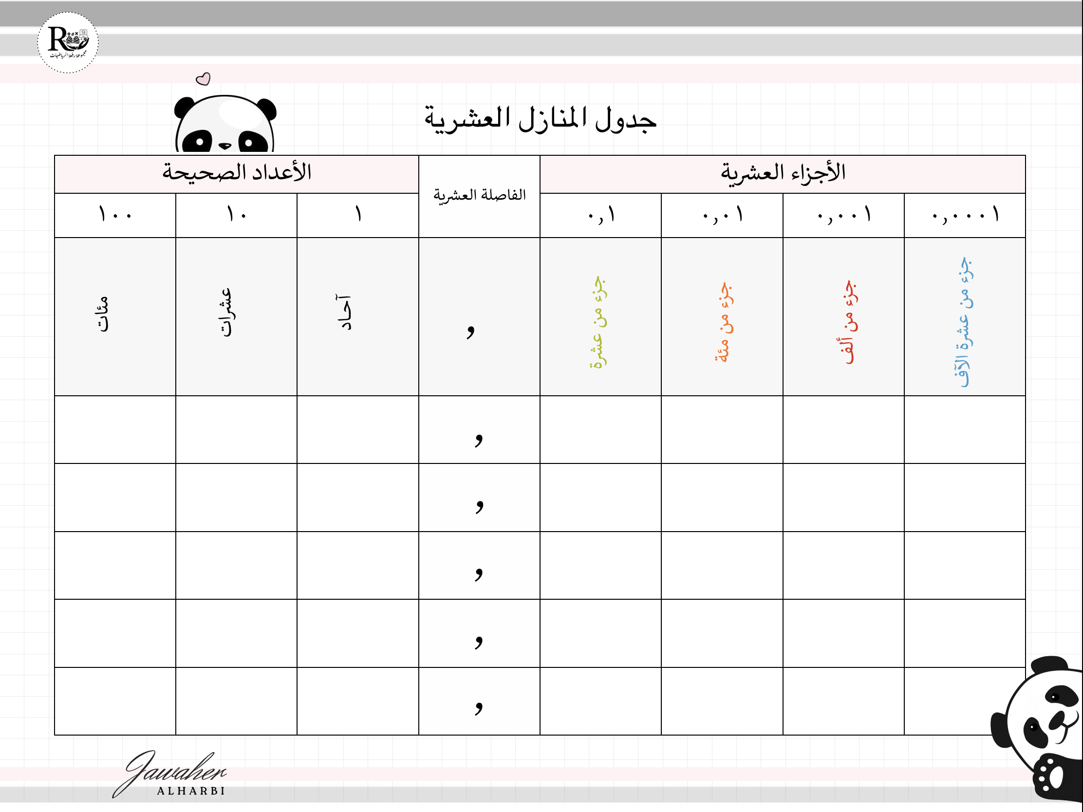 *جدول المنازل العشرية