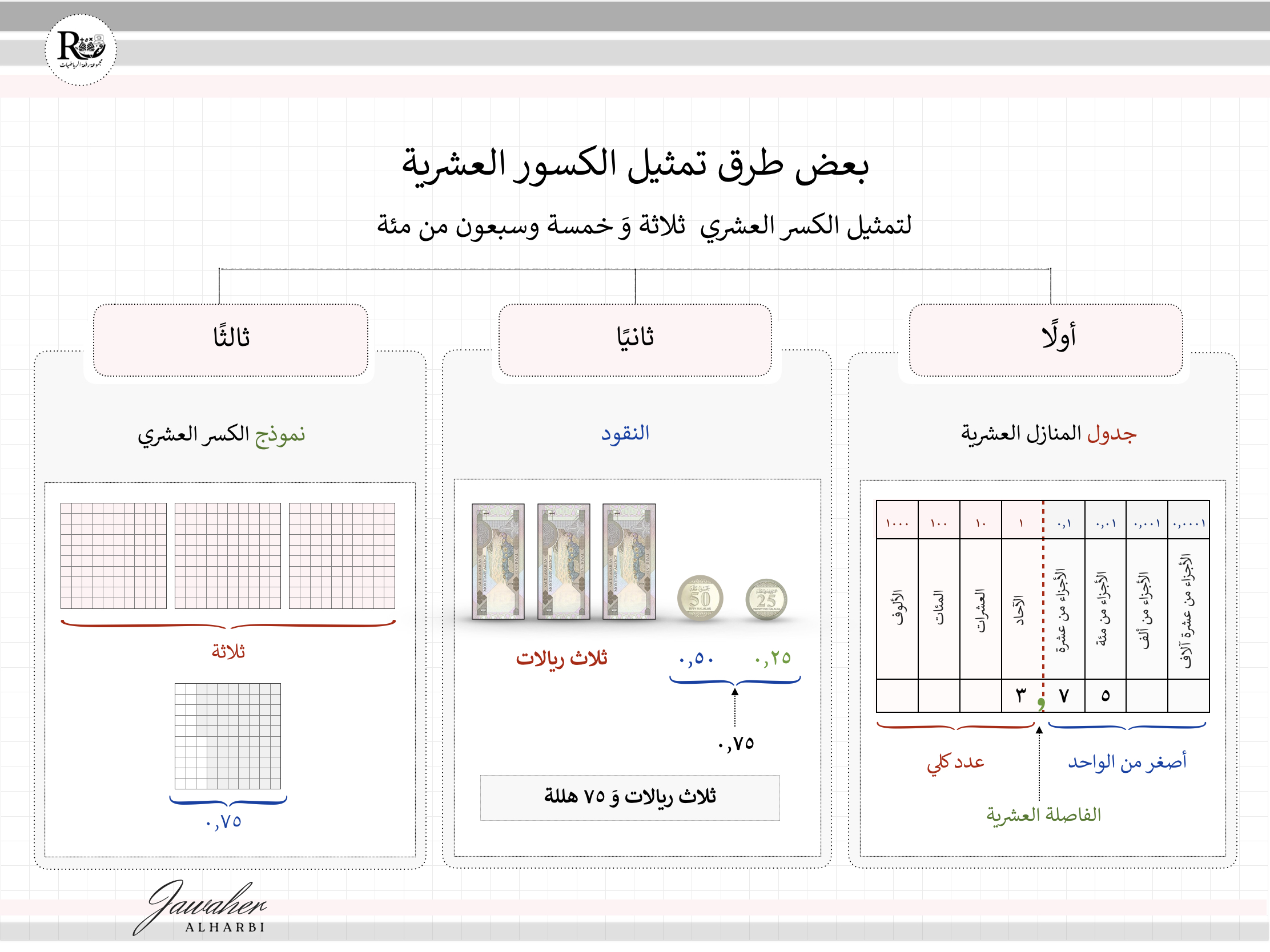 *خارطة مفاهيم لبعض طرق تمثيل الكسور العشرية