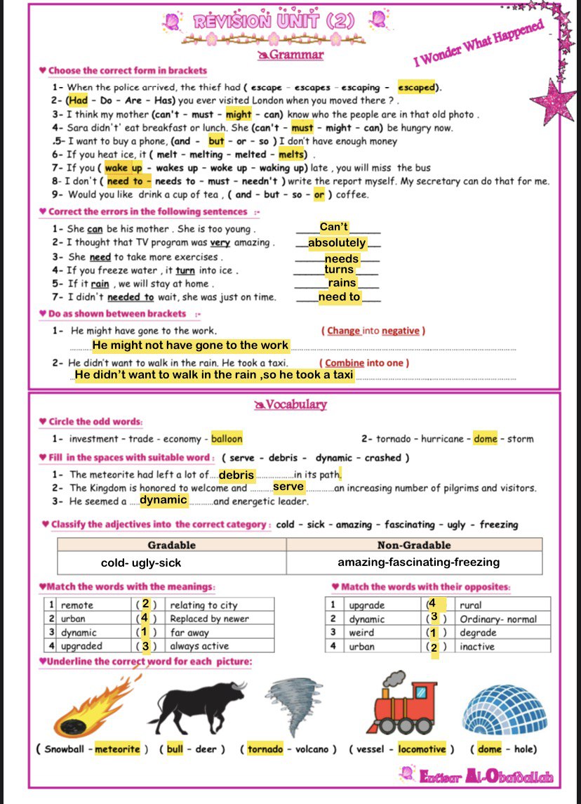 ورقه عمل مراجعه علي الوحده الاولي ميجا جول 2 jpg مع الاجابات أ/انتصار