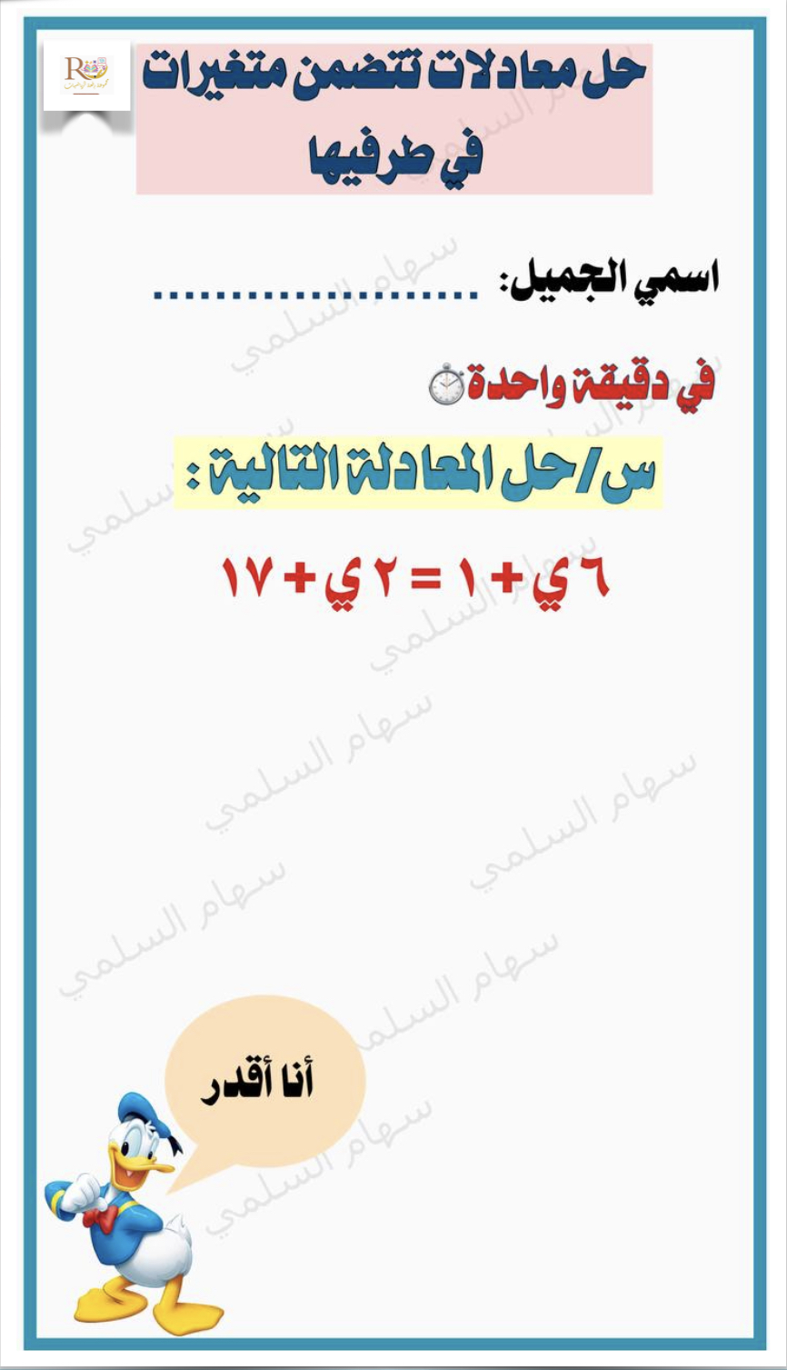 ورقة عمل حل معلدلات تتضمن متغيرات في طرفيها