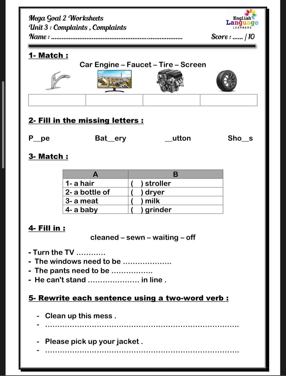 ورقه عمل علي الوحده الثالثه ميجا جول 1-3