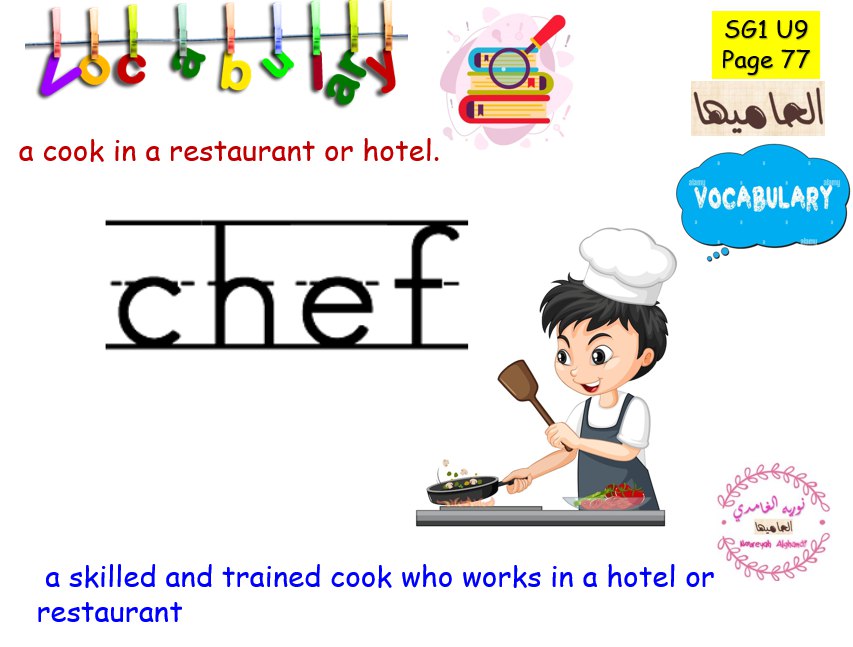 ورقه عمل علي الوحده التاسعه (chef -VOCUBLUARY)أ/نوريه jpg p77