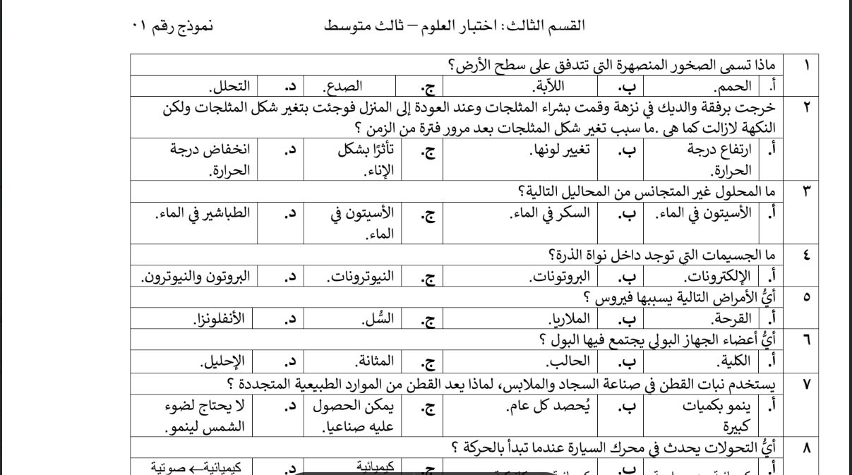 نماذج اختبارات مركزية