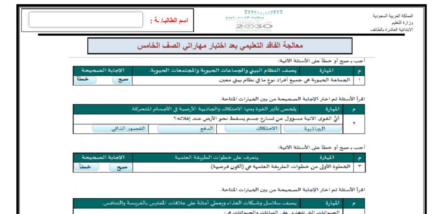 معالجة الفاقد التعليمي لاختبار مهاراتي
