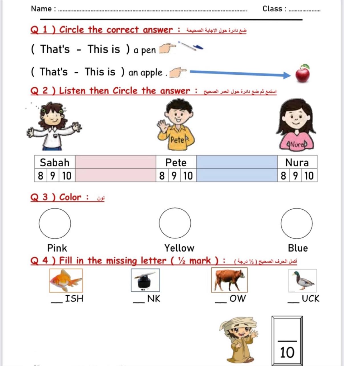 ورقه عمل للصف الاول الابتدائي jpg