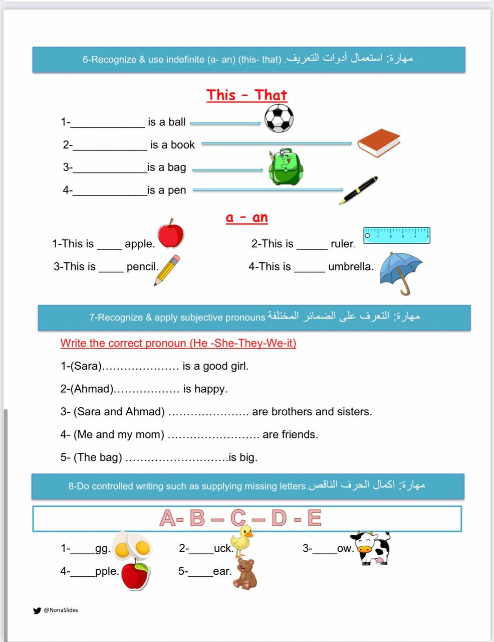 ورقه عمل مهارات للصف الاول الابتدائي jpg (a-an this-that)