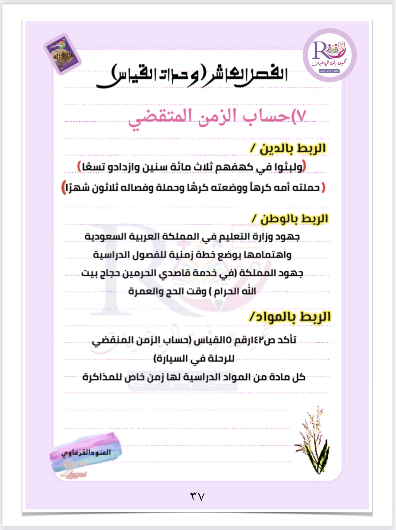 ربط الدرس بالدين والوطن والمواد الاخرى