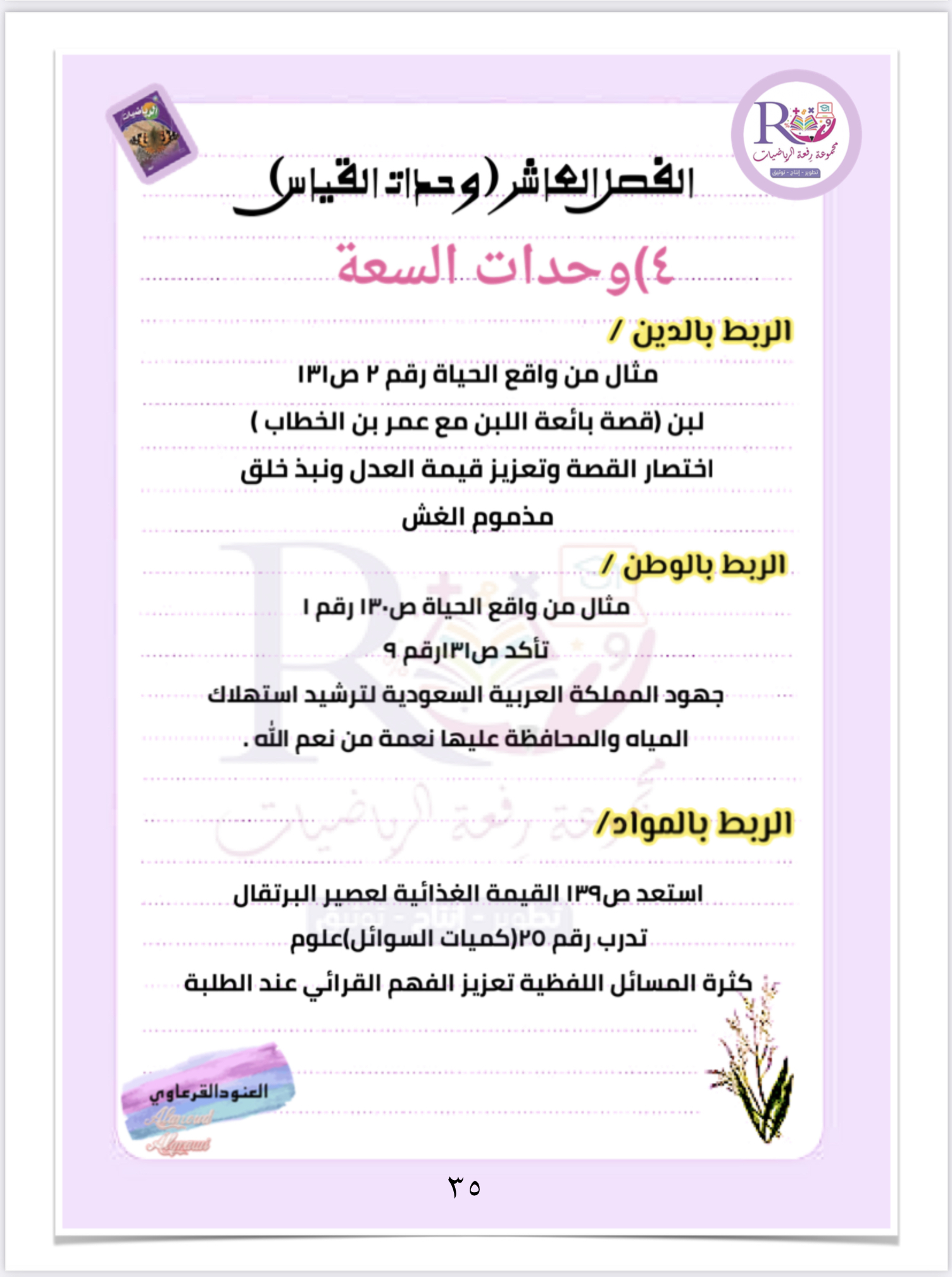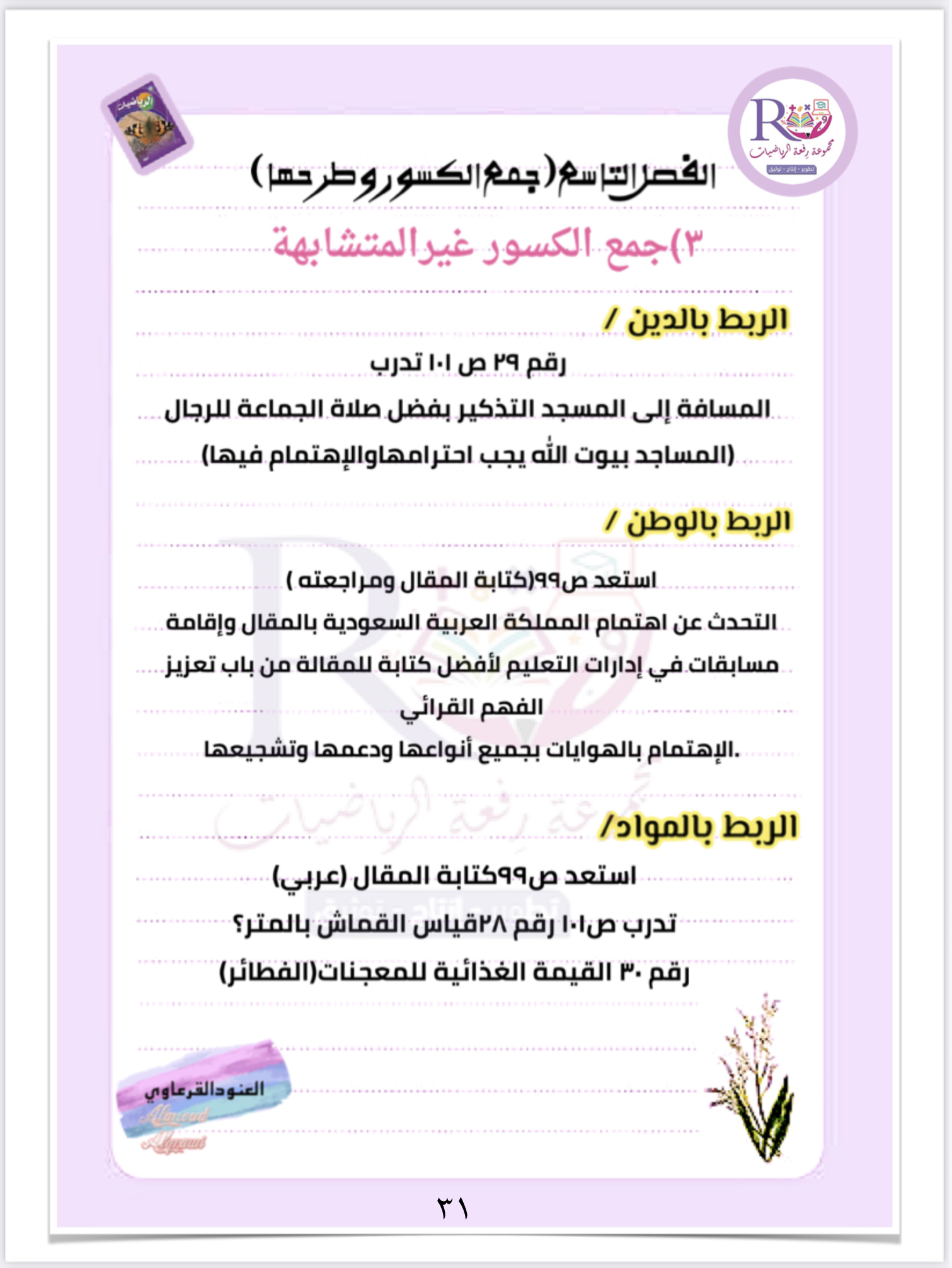 ربط الدرس بالدين والوطن والمواد الاخرى