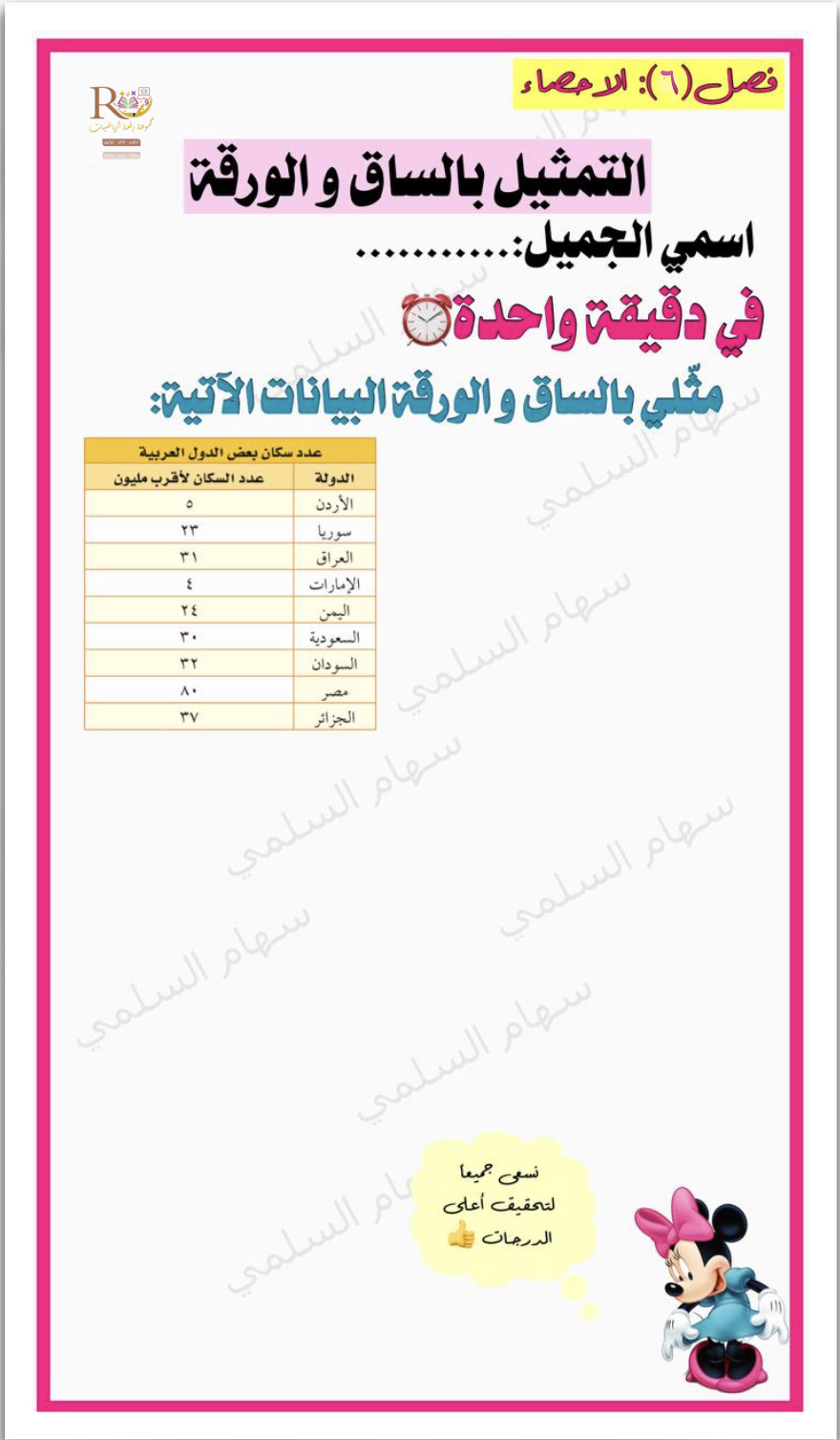 ورقة عمل التمثيل بالساق و الورقة