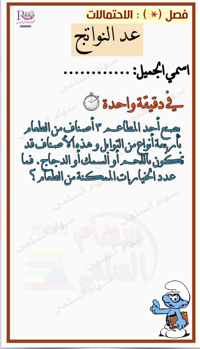 ورقة عمل عد النواتج