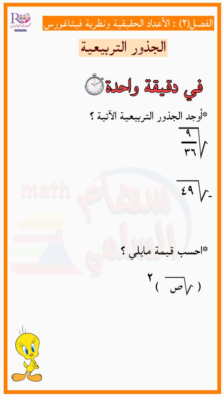 ورقة عمل الجذور التربيعية