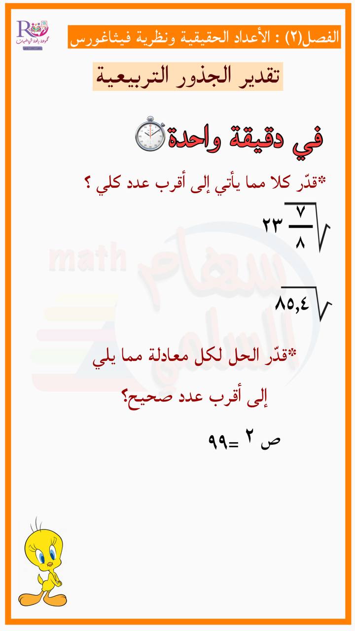 ورقة عمل تقدير الجذور التربيعية