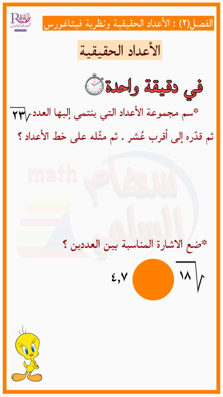 ورقة عمل الأعداد الحقيقية