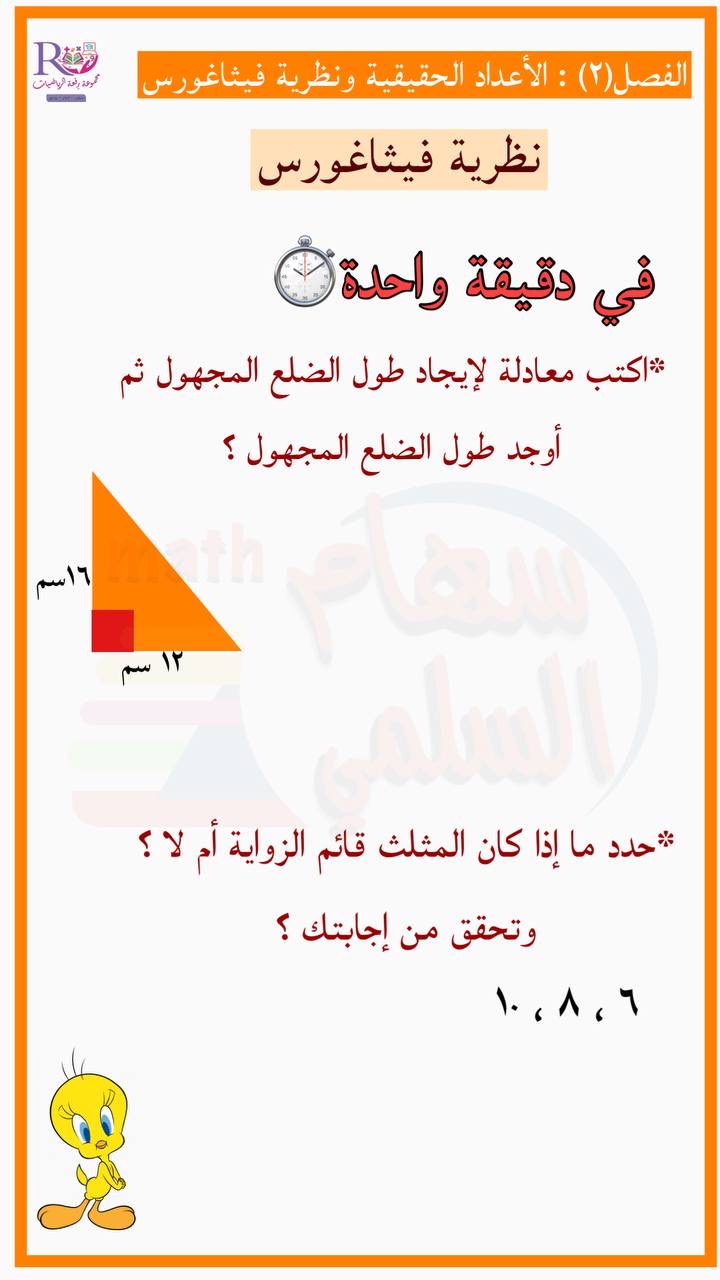 ورقة عمل نظرية فيثاغورس