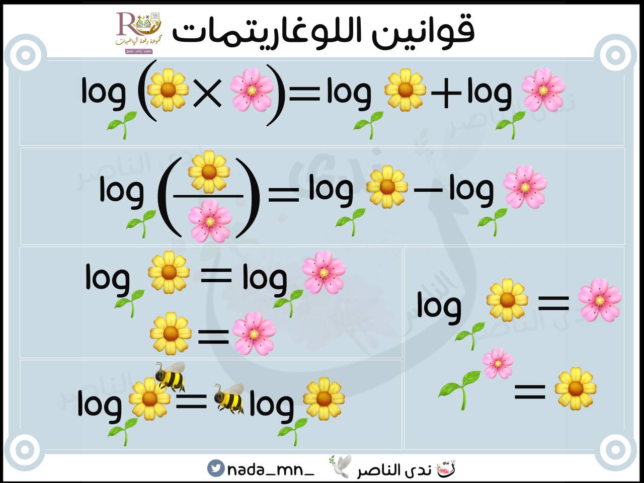 تصميم لتوضيح قوانين اللوغاريتمات باستخدام الايموجي .