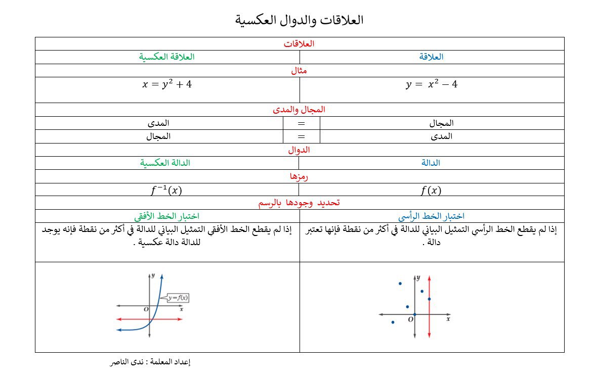 مقارنة بين " العلاقات والدوال والعلاقات والدوال العكسية .