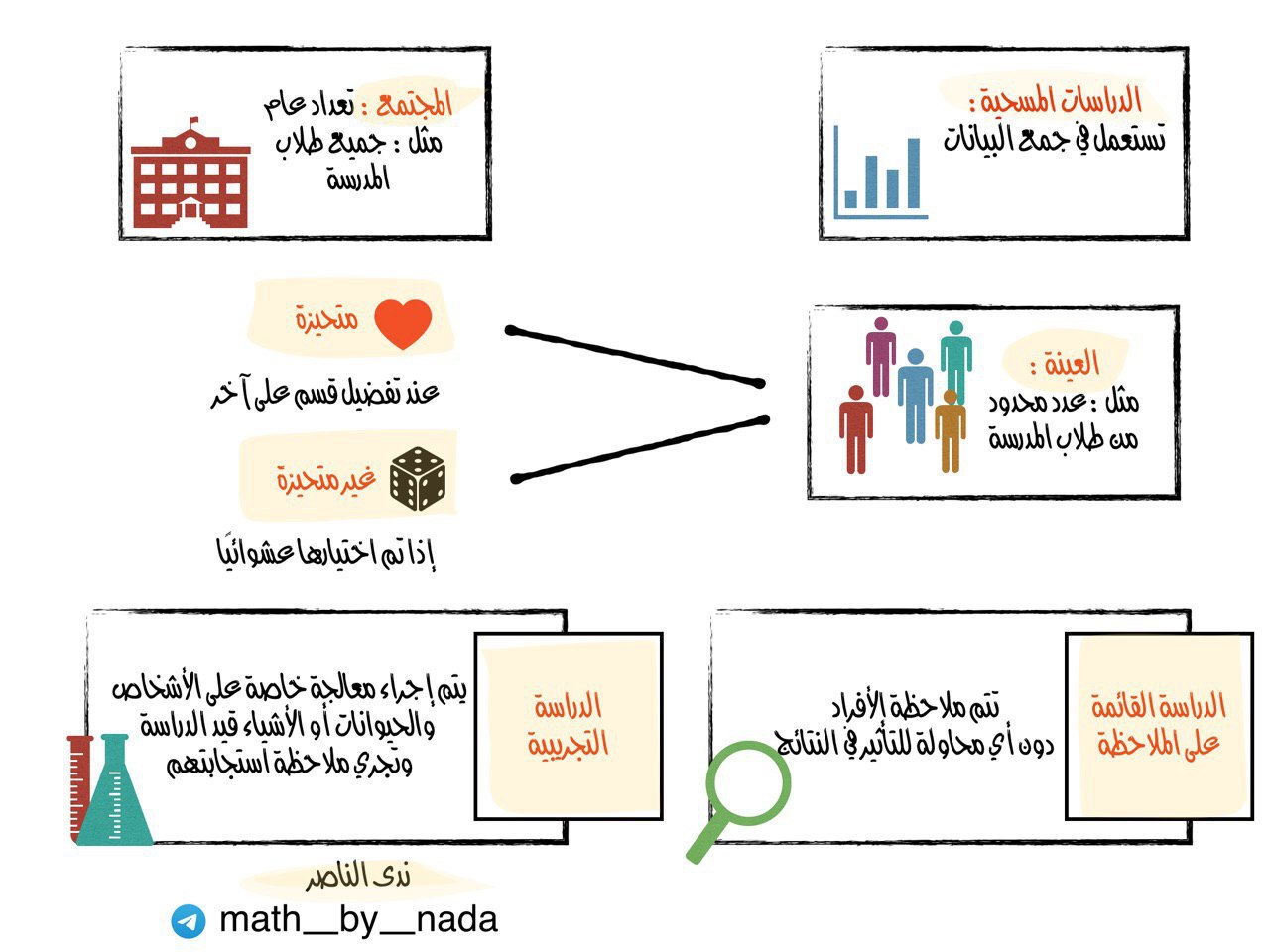 تصميم لتوضيح أنواع الدراسات الإحصائية .