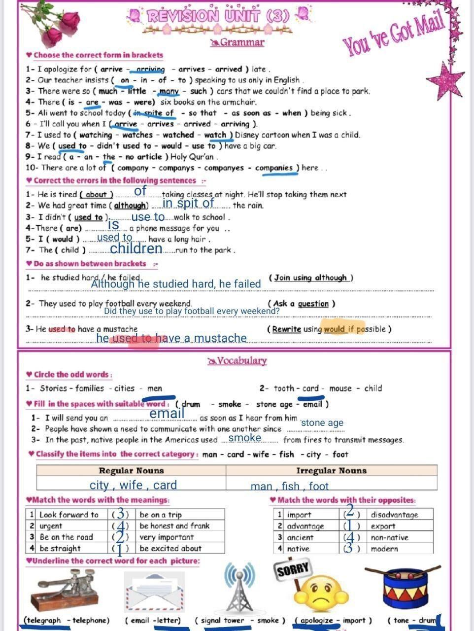 مراجعه نهائيه للوحده الاولي والثانيه 1-2. pdf