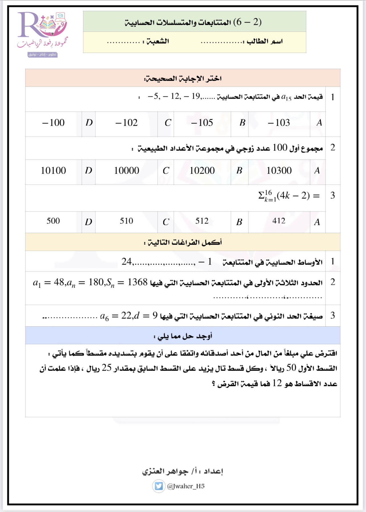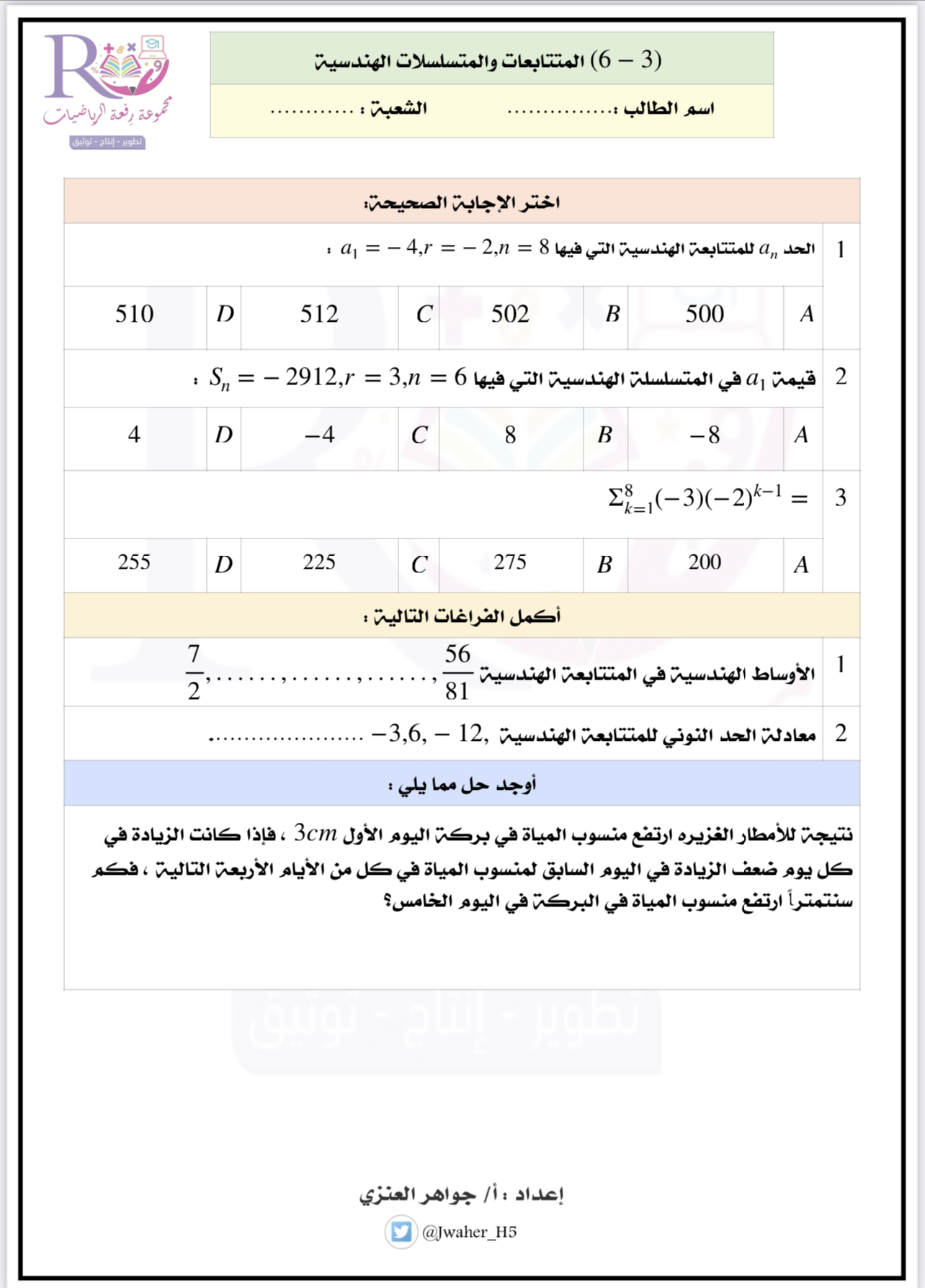 اختبار الفصل الدراسي الثاني _نموذج 4 Word