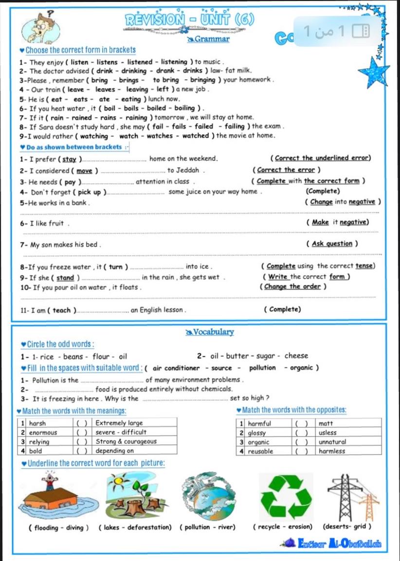 ورقه عمل للوحده السادسه (MG2.2 U6 Revision Going Green) pdf أ/عيسي