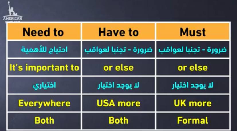 الفرق بين need to, have to, must شرح قواعد اللغة الانجليزية jpg