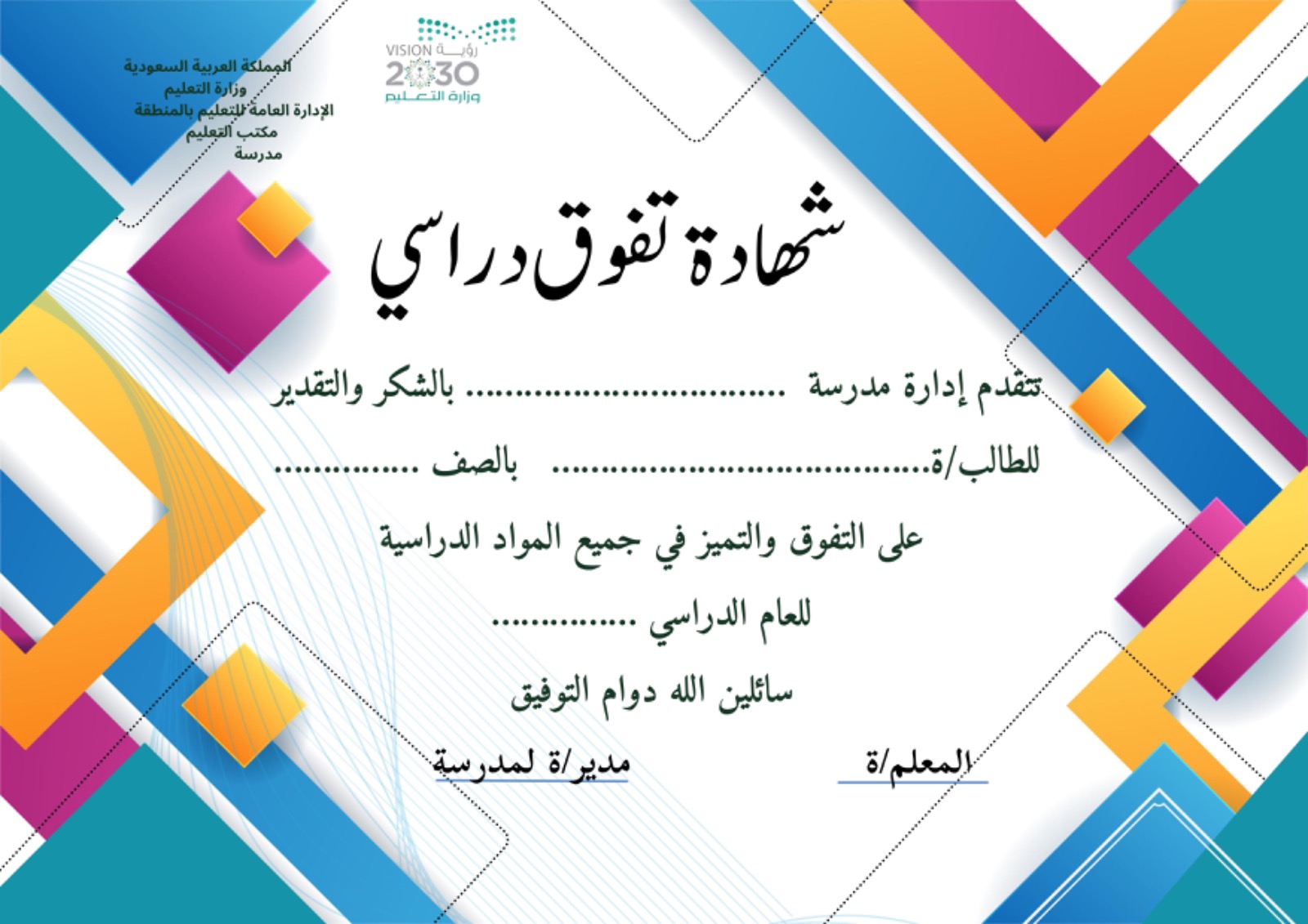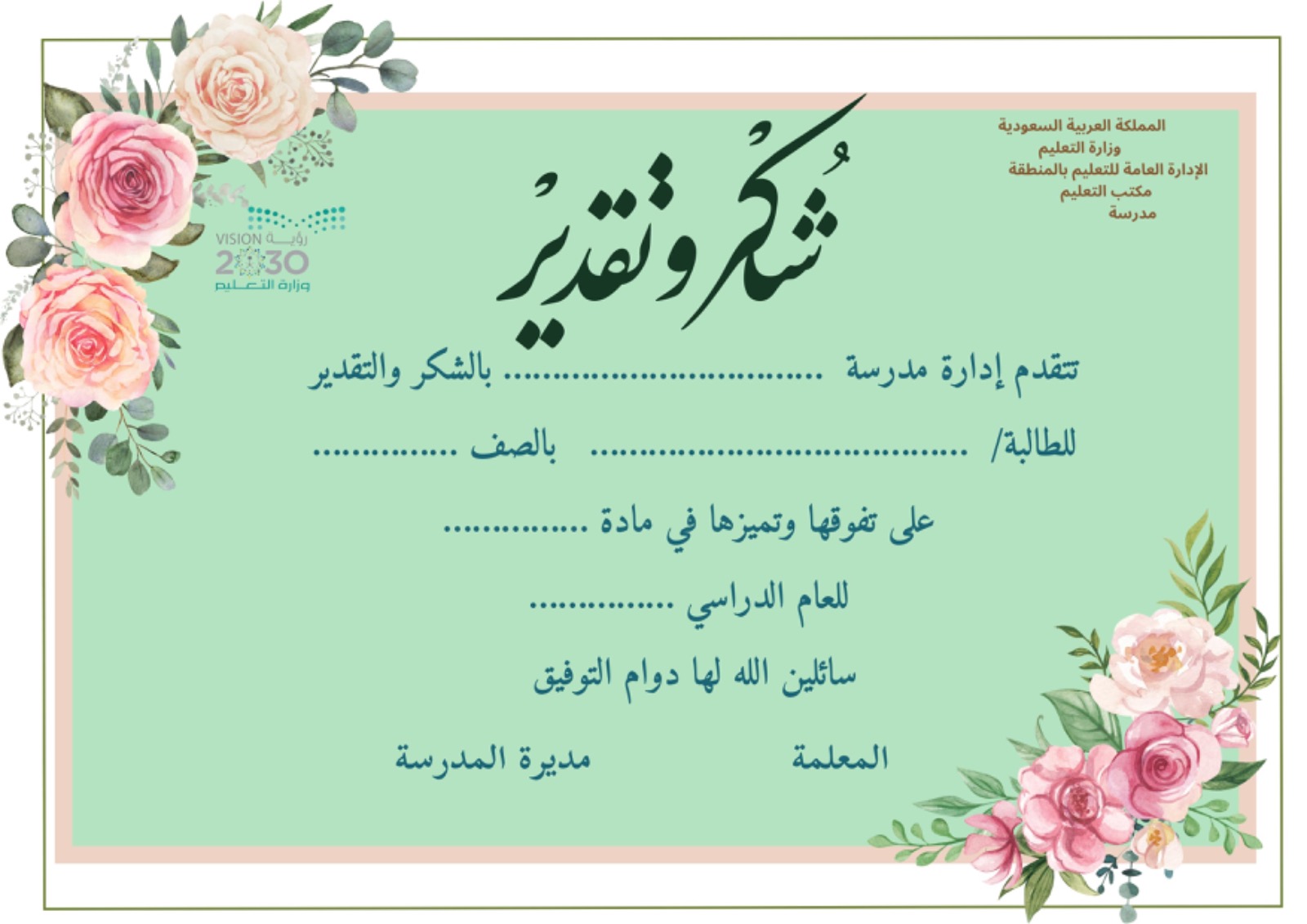 شهادة تفوق دراسي للطالبات نموذج2
