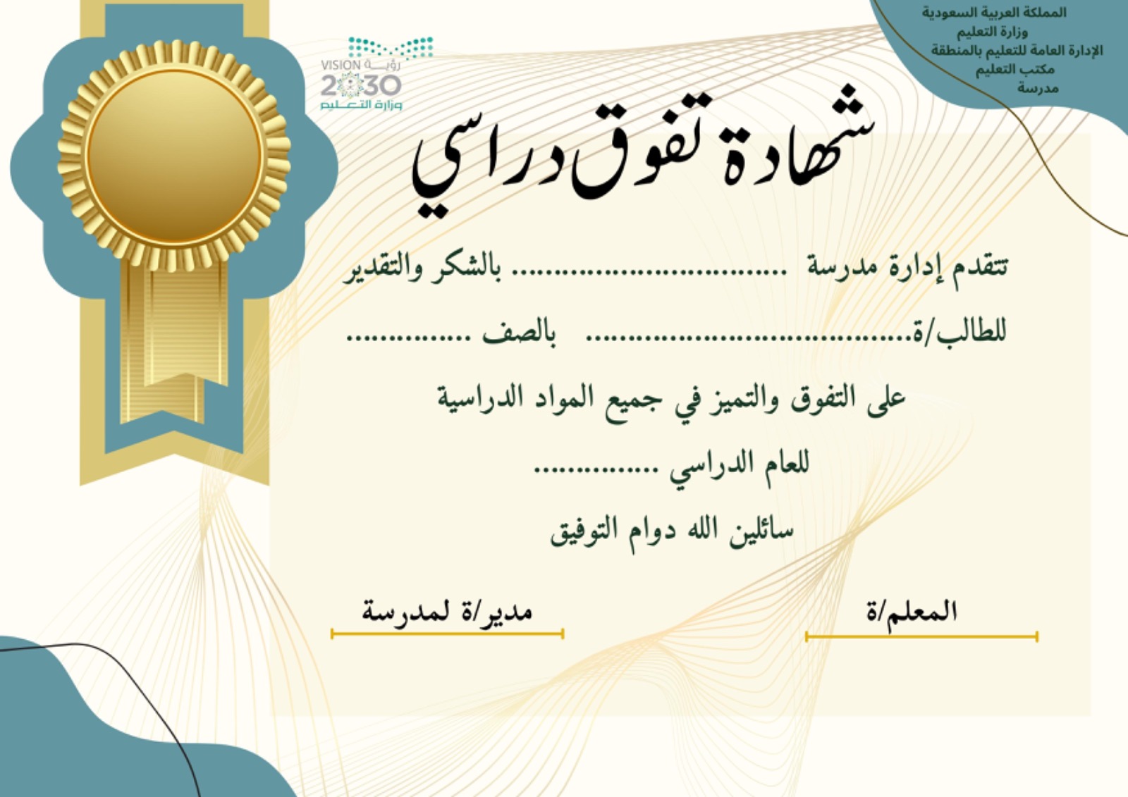 شهادة تفوق دراسي للطالبات نموذج3