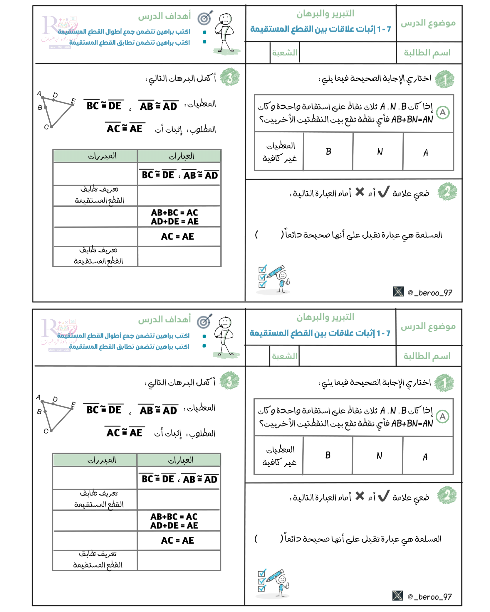 إثبات علاقات بين القطع المستقيمة أ.عبيرنورالهي