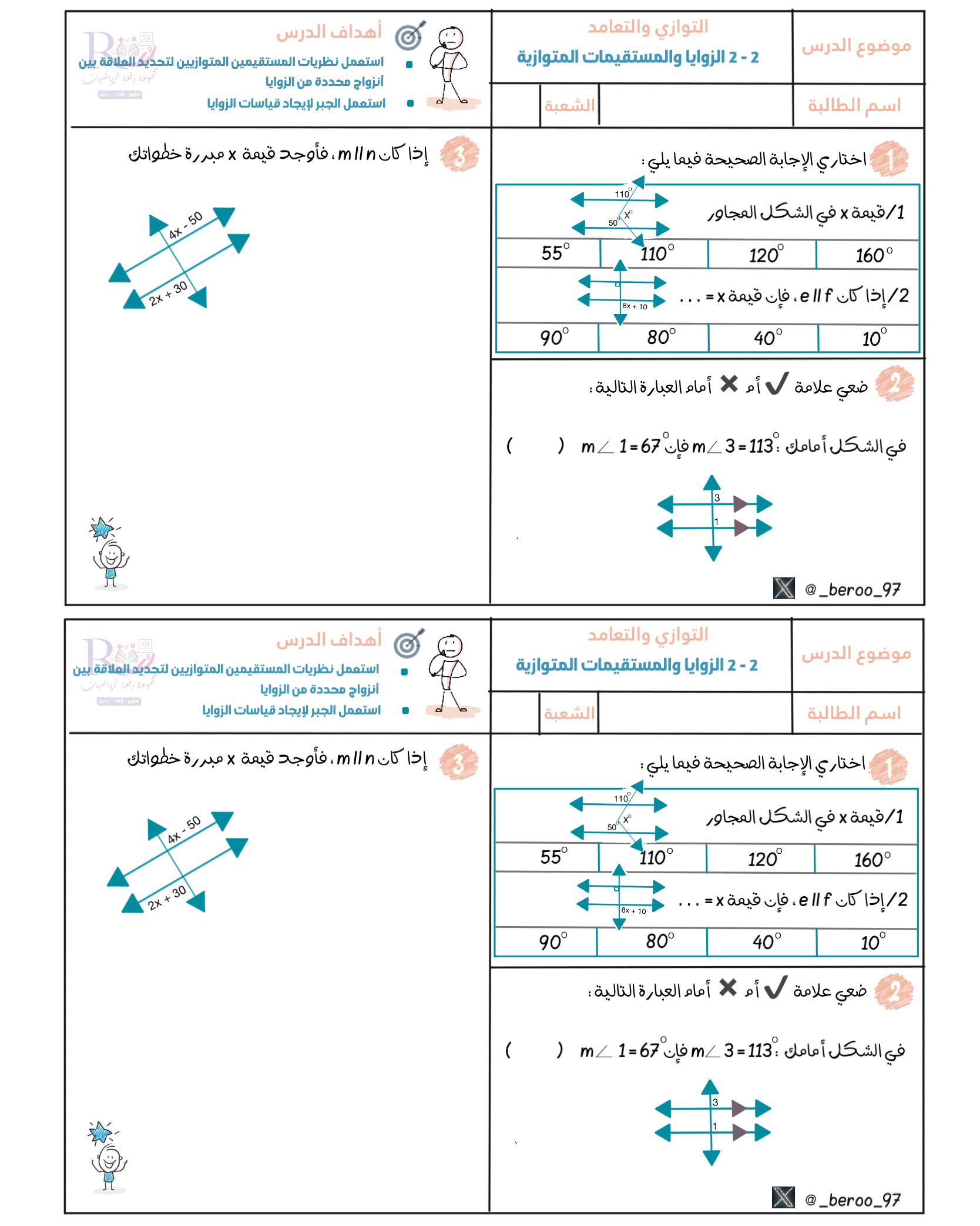 الزوايا والمستقيمات المتوازية أ.عبيرنورالهي