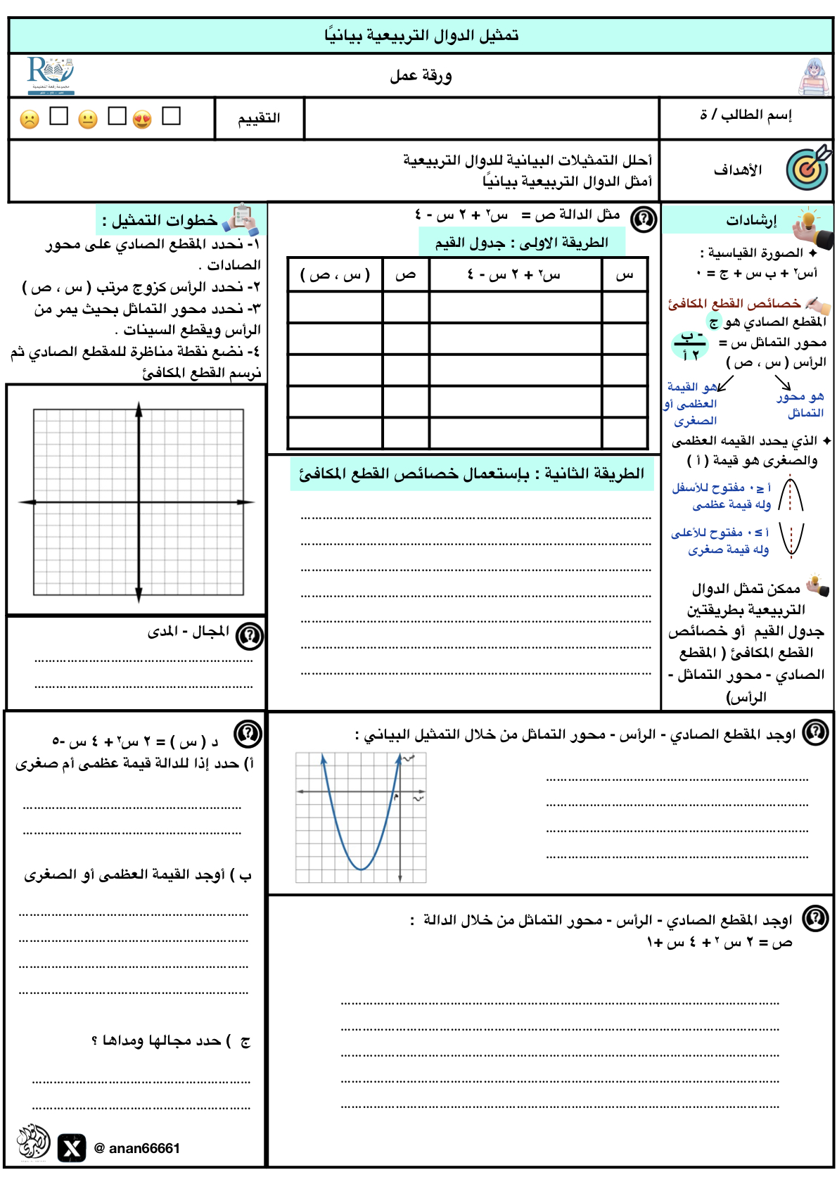 تمثيل الدوال التربيعية بيانيا
