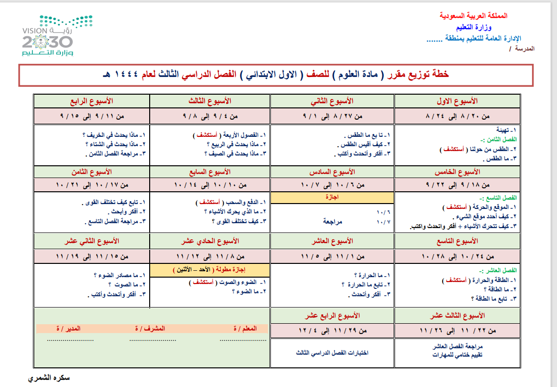 توزيع المنهج