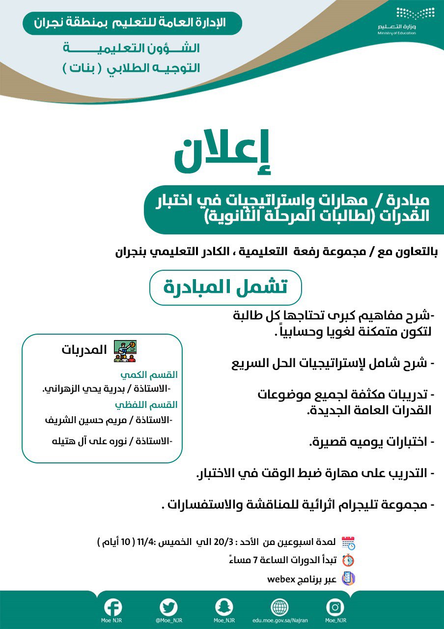 مبادرة / مهارات و استراتيجيات في اختبار القدرات لطالبات المرحلة الثانوية